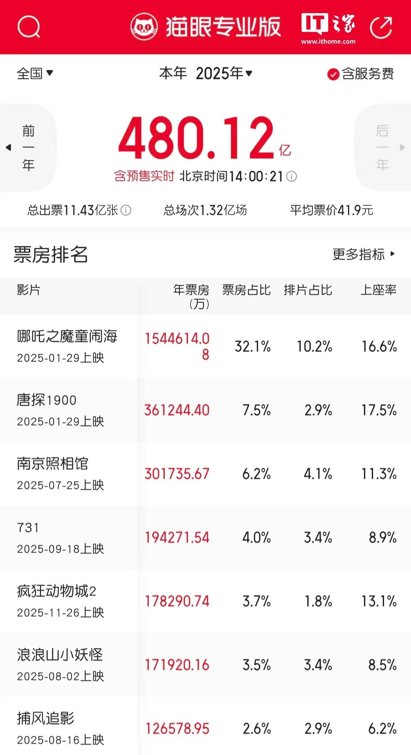 最安全的线上配资平台 2025 年度电影总票房破 480 亿