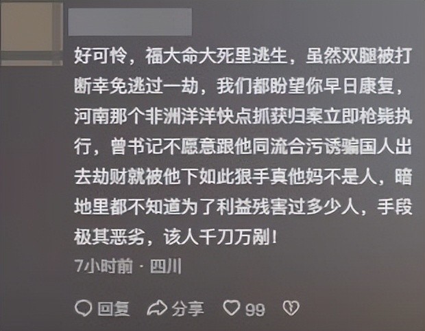 躺在病床上的曾凡贵通过同乡向媒体传达心愿:“希望能尽快回到祖国接受系统治疗,家里还有两个年幼的孩子等着我团聚。”他还特别提醒关注者:“目前账号已被盗用,若出现任何投资或募捐信息,请切勿相信,谨防受骗。”