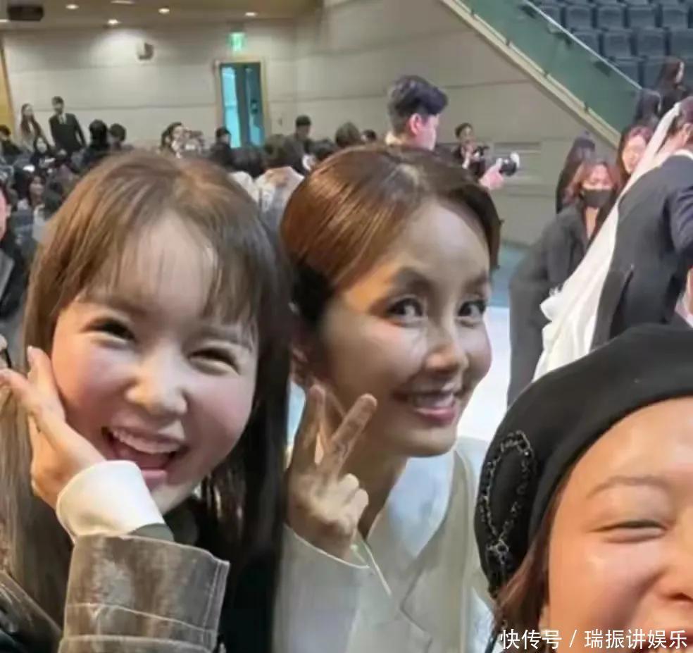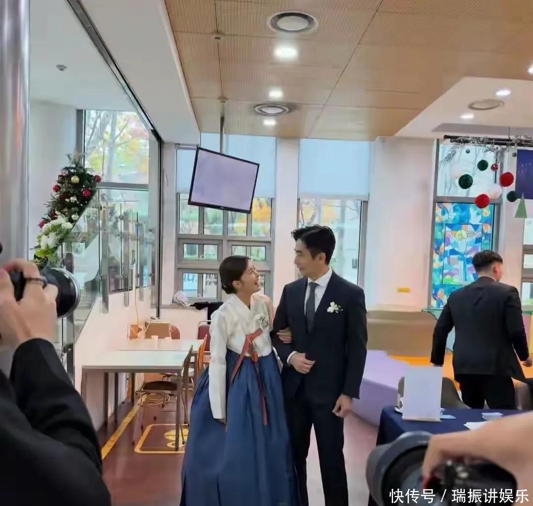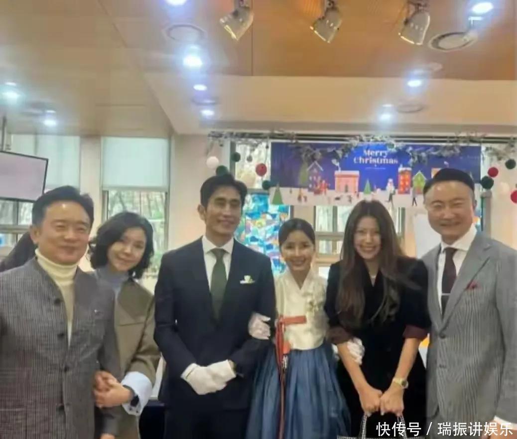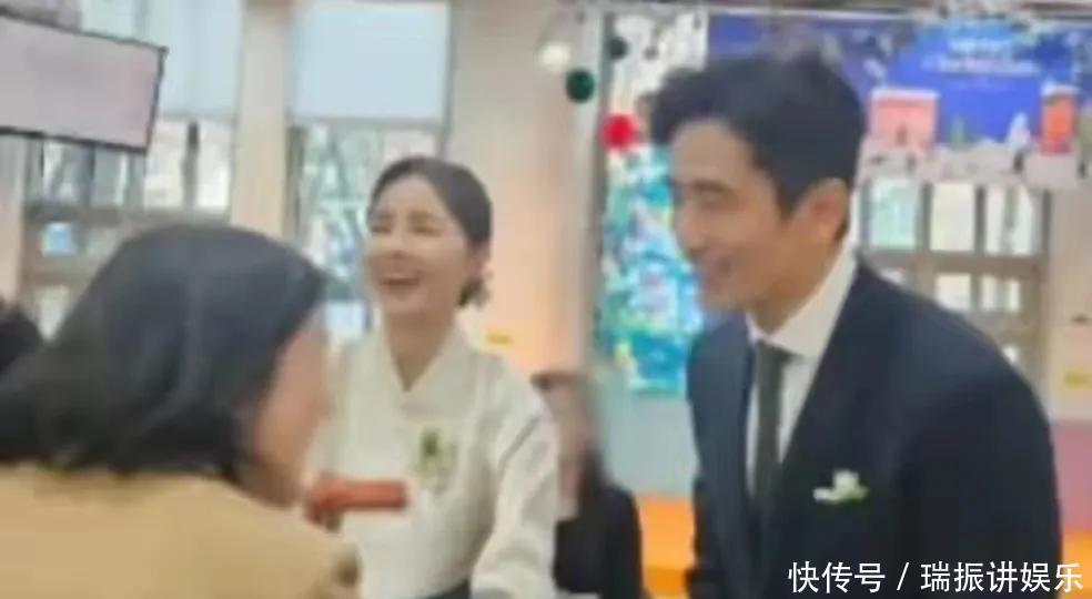 妻子申爱罗则身着传统韩服,低丸子头造型温婉大方,笑起来时眉眼柔和,全程目光紧锁台上的儿子,满是欣慰与不舍。