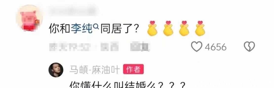 哪怕离婚和马頔连婚礼都没有办,但这并不影响他们秀恩爱。网络上被曝出马頔和李纯同居的消息时,马頔带点小得意的回应“你懂什么叫结婚么”?