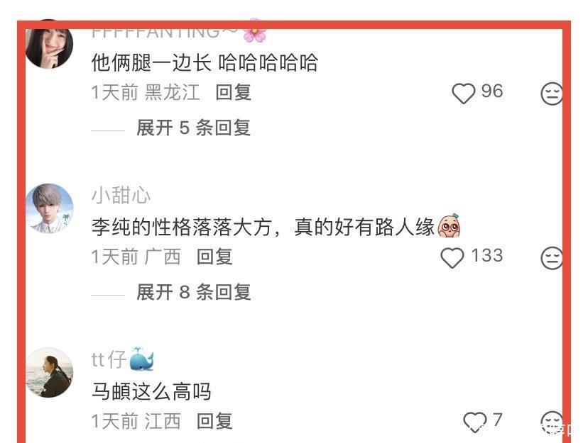 更有网友发现,虽然马頔比李纯高了一个头,但是两个人的双腿却一样长。不得不说李纯的身材比例真是好,舞蹈演员出身、这比例简直无敌了。