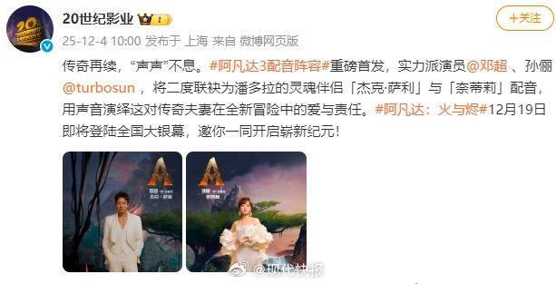 随后孙俪发文:是战士,也是母亲,很期待与大家一同见证奈蒂莉的全新故事。邓超发文:12月19日,让我们在潘多拉星球和老朋友重聚。