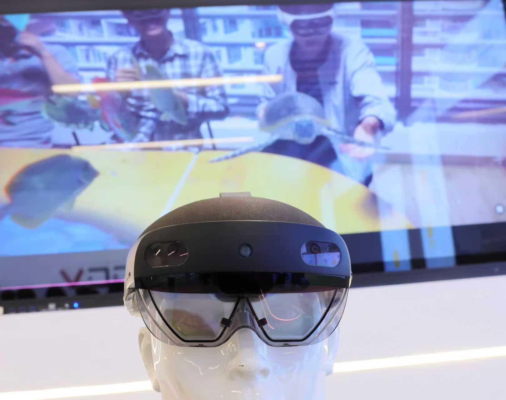 “谷粒谷粒,帮我看看周围是什么环境?”在谷东科技的展厅里,南区销售总监吴海峰戴上最新研发的双目阵列全彩AR眼镜,轻声提问后,镜片瞬间投射出周边环境的智能分析结果——这款以谷东科技自研自产的阵列光波导显示模组为核心的AR+AI眼镜,集成了自研大模型与多模态交互系统,不仅能实时语音互译、提词辅助,还能通过环境感知为用户提供“AI导游”服务。