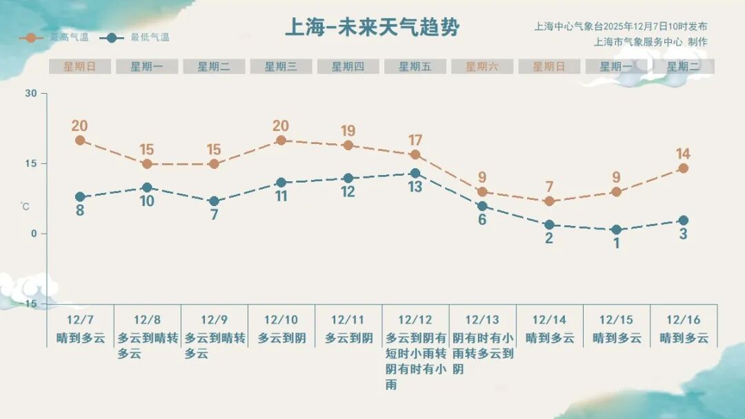 今天进入“大雪”节气,申城却暖如“小阳春”。早晨雾气弥漫,部分地区能见度不足百米,但随着阳光驱散雾气,气温迅猛回升。10时左右,市区气温已经超过了14℃,最高气温冲向20℃,街头不少市民身着单衣,仿佛置身深秋。然而,这般异常暖意恐难持久,一场天气变局正在酝酿,下周气温一波三折,先冷后暖再“冷冻”。