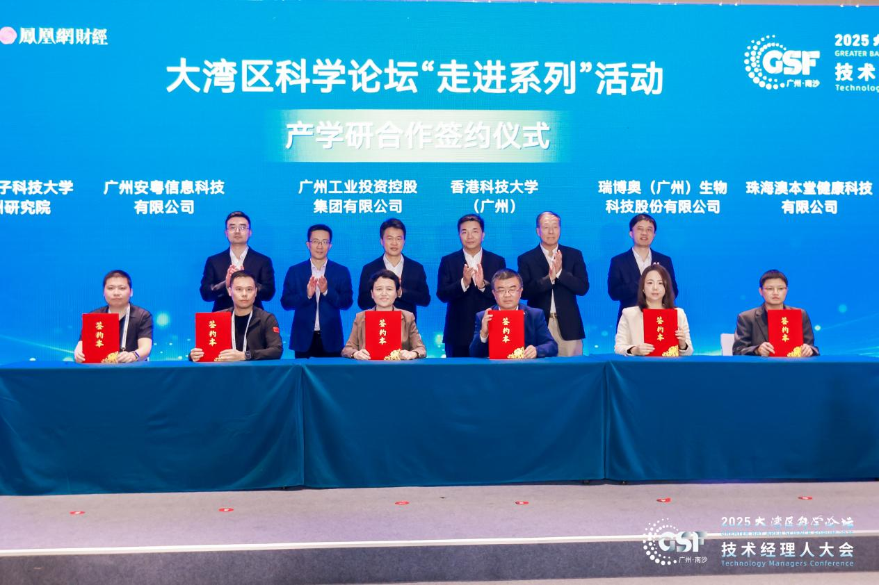此外,广州工业投资控股集团有限公司、香港科技大学(广州)、广州安粤信息科技有限公司、西安电子科技大学广州研究院、瑞博奥(广州)生物科技股份有限公司、珠海澳本堂健康科技有限公司等6家单位代表完成签约。