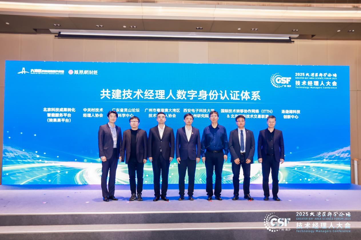 广州市粤港澳大湾区技术经理人协会、西安电子科技大学广州研究院、广东省灵山论坛科学中心、国际技术转移协作网络(ITTN)、中关村技术经理人协会、北京国际技术交易联盟、北京科技成果转化智能服务平台(转果果平台)、汤逊湖科技创新中心等,完成技术经理人数字身份认证体系共建签约。