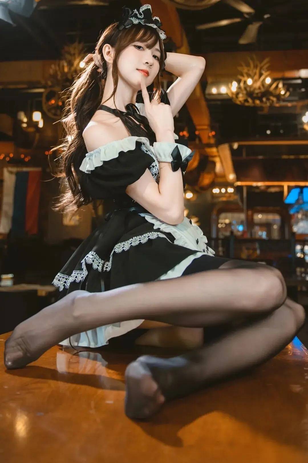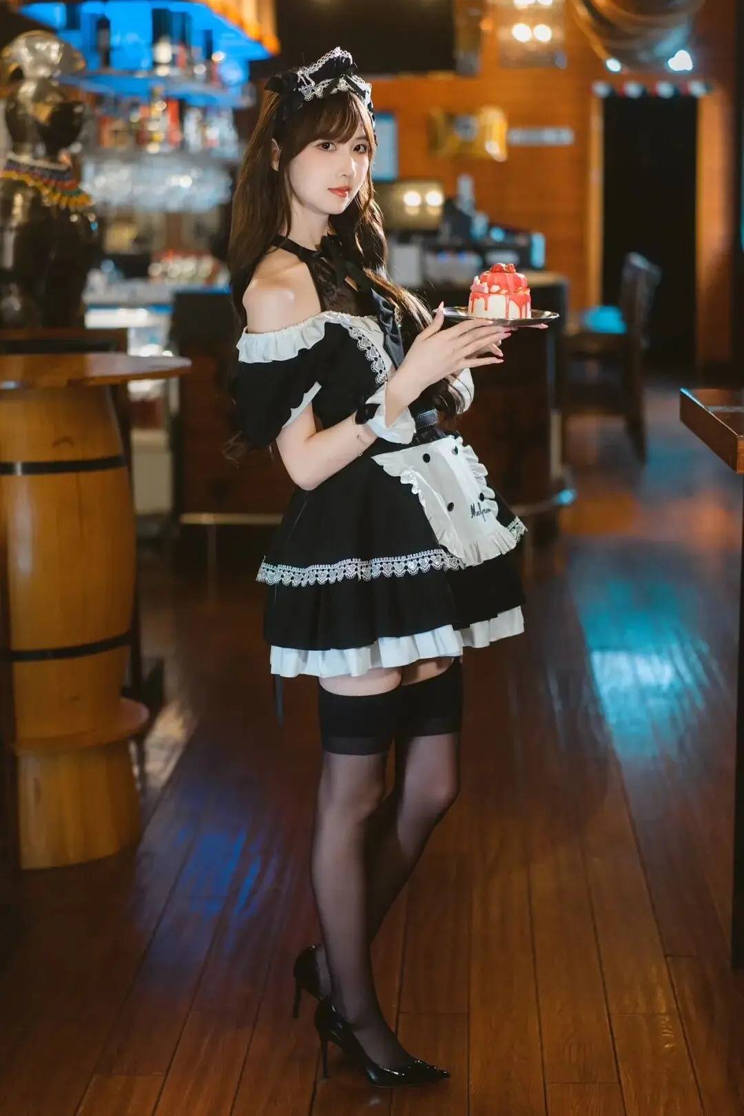 人物手持甜品托盘,姿态优雅又具场景感。这种姿势巧妙利用道具增强互动性,结合侧身站姿凸显曲线,在复古风场景里轻松营造出甜飒又有故事感的氛围,仿佛把角色扮演的魅力直接搬进镜头,谁拍谁是氛围感满满的画报主角,出片绝绝子!