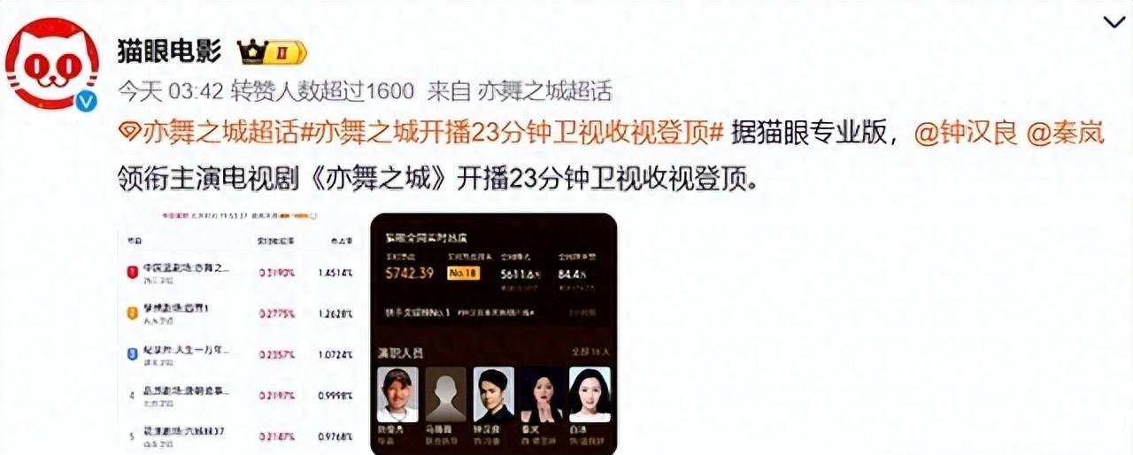 央视今年一路遥遥领先,年代、谍战、古装轮番上分,卫视这边普遍低气压。结果《亦舞之城》一上线,开播半小时直奔卫视收视榜首。谁干的?刘俊杰+钟汉良。