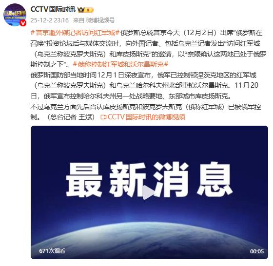 最安全的线上配资平台 普京向外国记者发出“访问红军城和库皮扬斯克”邀请