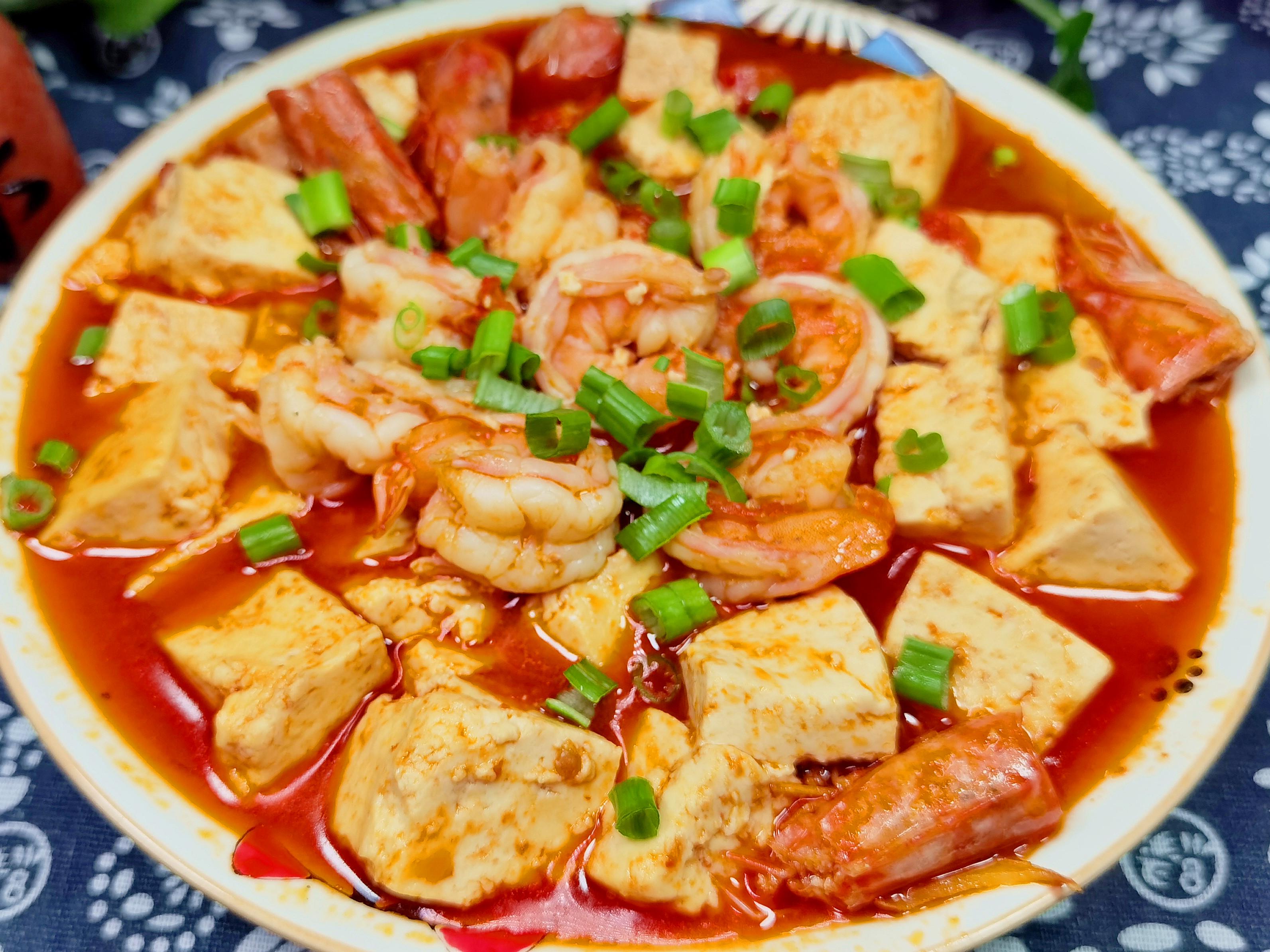 这道菜,红彤彤的,看着就开胃。西红柿开胃生津,虾仁高蛋白低脂肪,和豆腐炖在一起,营养全面,味道鲜美,绝对是下饭神器。