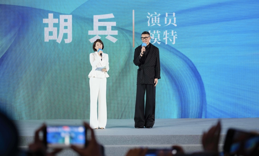 图为演员、模特胡兵在与主持人的对谈中,全方位揭秘他的“年轻态”人生管理术。