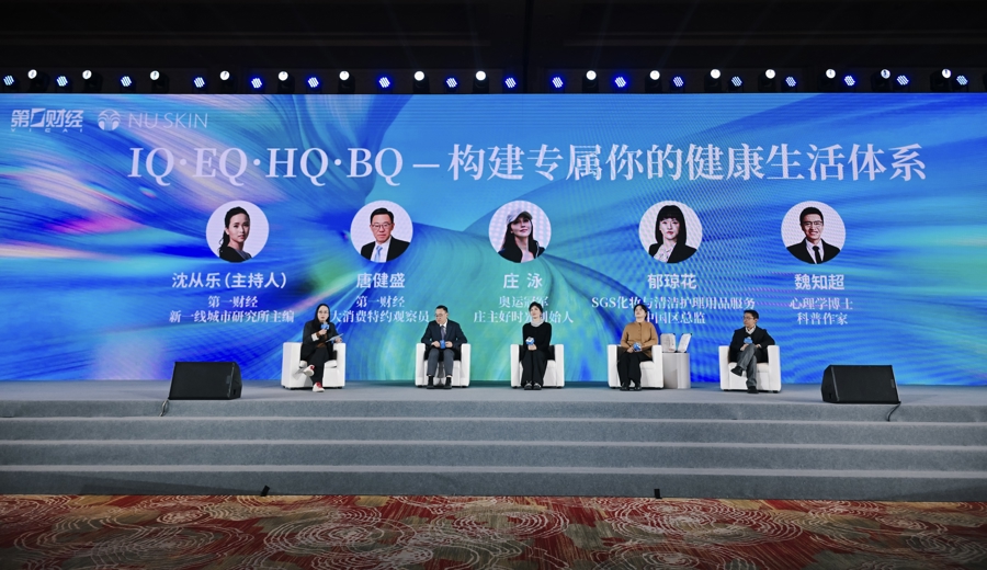 压轴的圆桌论坛以“IQ·EQ·HQ·BQ——构建专属你的健康生活体系”为主题,直击“知易行难”的普遍困境。在第一财经新一线研究院主编沈从乐的主持下,第一财经大消费特约观察员唐健盛、奥运冠军、庄主好时光创始人庄泳、SGS化妆与清洁护理用品服务中国区总监郁琼花、心理学博士、科普作家魏知超一起,展开精彩对话。