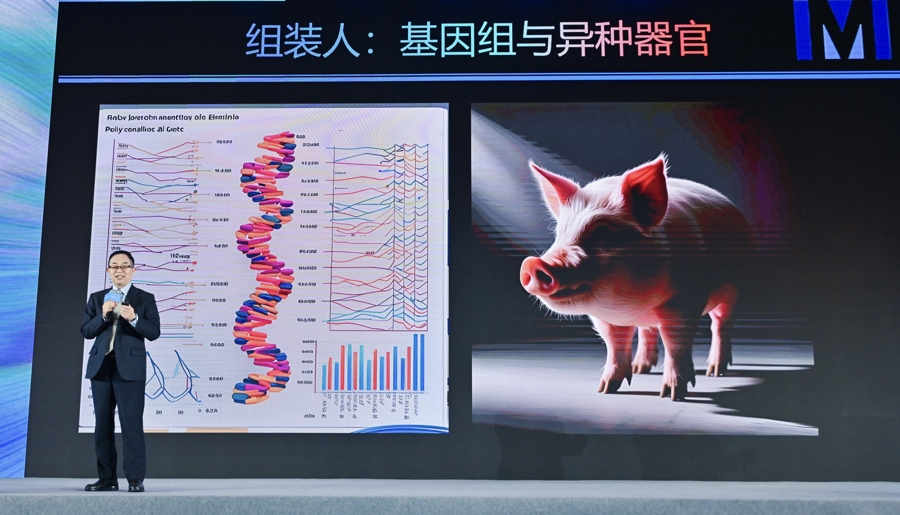 图为华大集团CEO尹烨发表题为“科技引领‘康寿时代’ 实现健康生活可及可享可负担”的演讲。