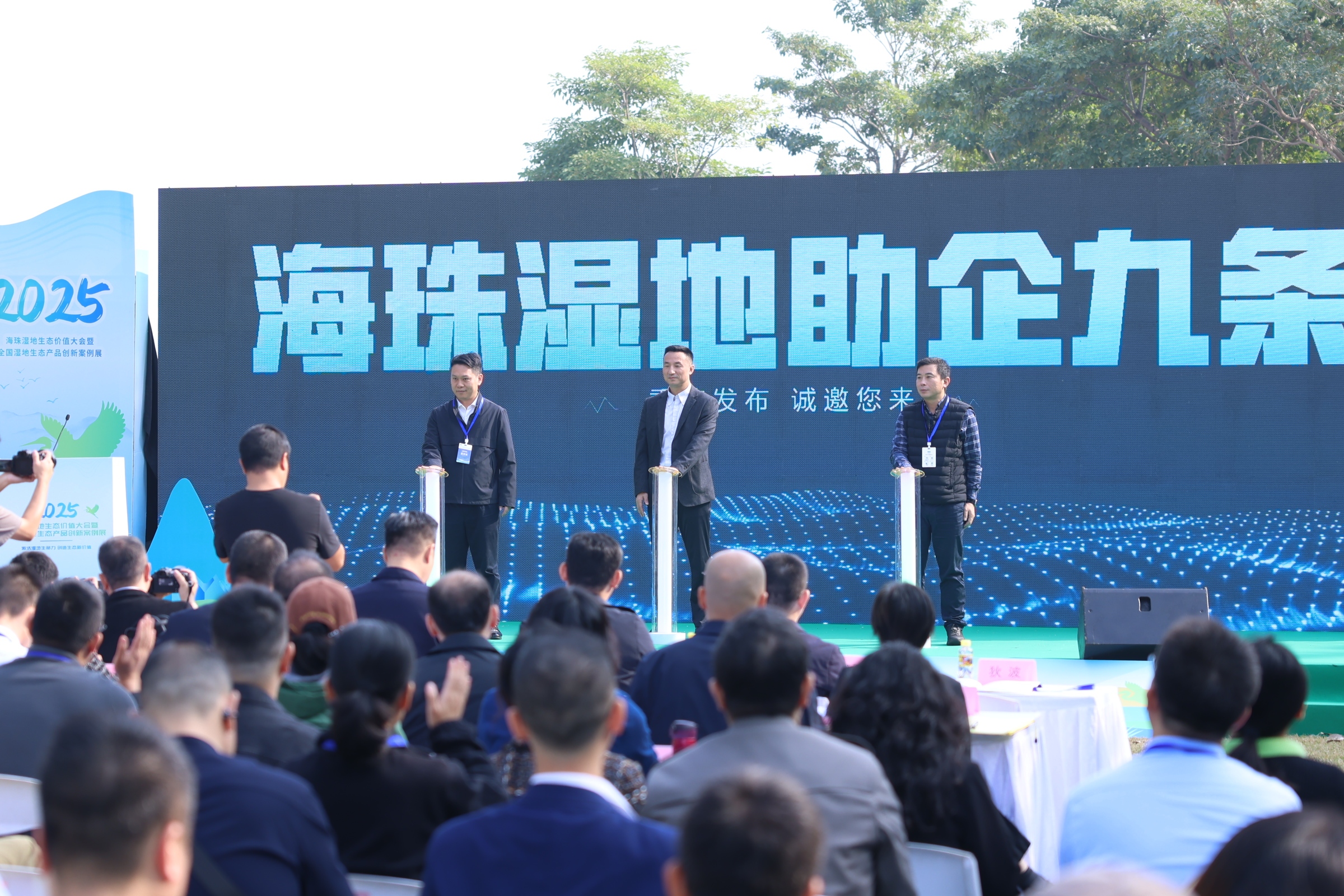 活动现场,人群、鸟鸣、展台与光影交织,一套面向未来城市生态价值的新体系随之亮相:生态监测数据首次以产品形式进入市场,湿地场景向创新企业开放,助企政策与新技术在水网之间串联起新的可能。